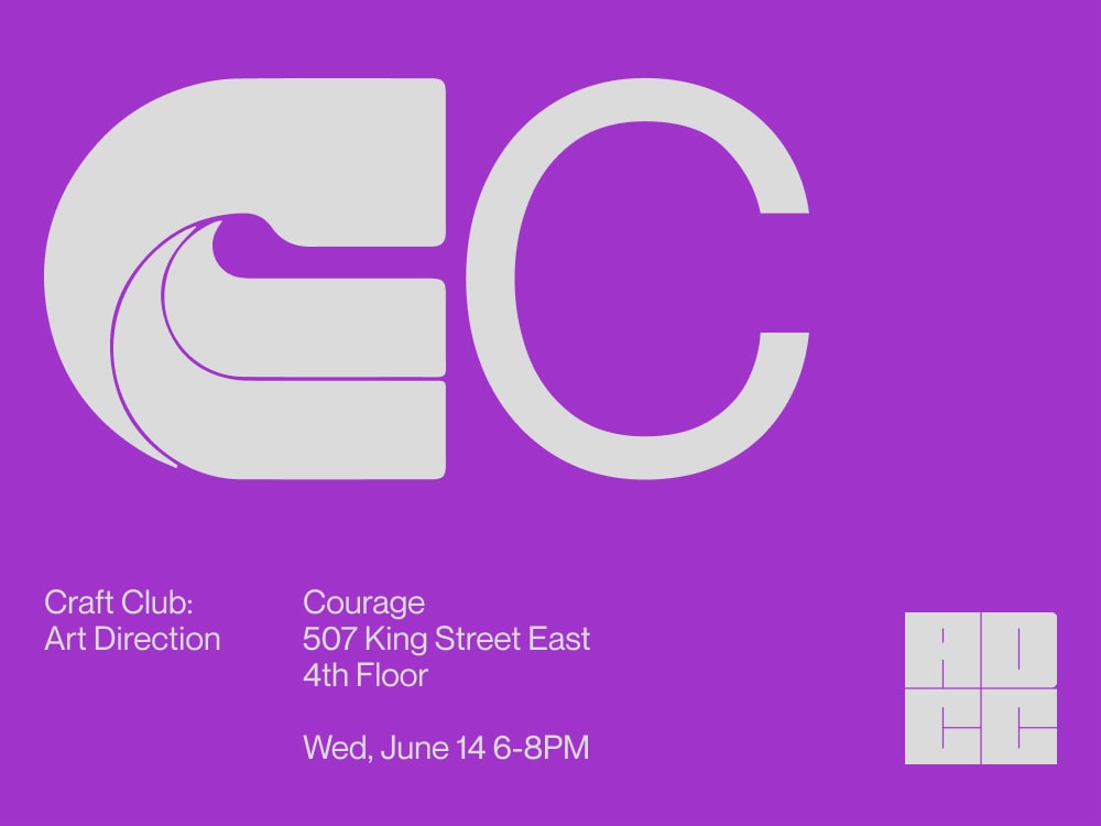 Craft Club is back! Come nerd out with us on June 14th at Courage. Our next edition of Craft Club is all about Art Direction, featuring a panel discussion with Anthony Chelvanathan (Edelman), Skye Deluz (Rethink), and Christina Yu (Merchant), hosted by Joel Holtby (Courage). Craft Club is a new event series for the creative community focused on the craft behind our work. COST: Free for ADCC Members $10 + tax/fees for Non-Members SCHEDULE: 6pm - Doors open 6:30pm - Panel discussion